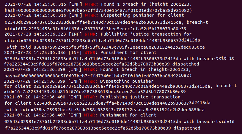 Ni une ni deux, la watchtower détecte la tentative de triche et puni à nouveau le fraudeur. Voici les logs de la watchtower :