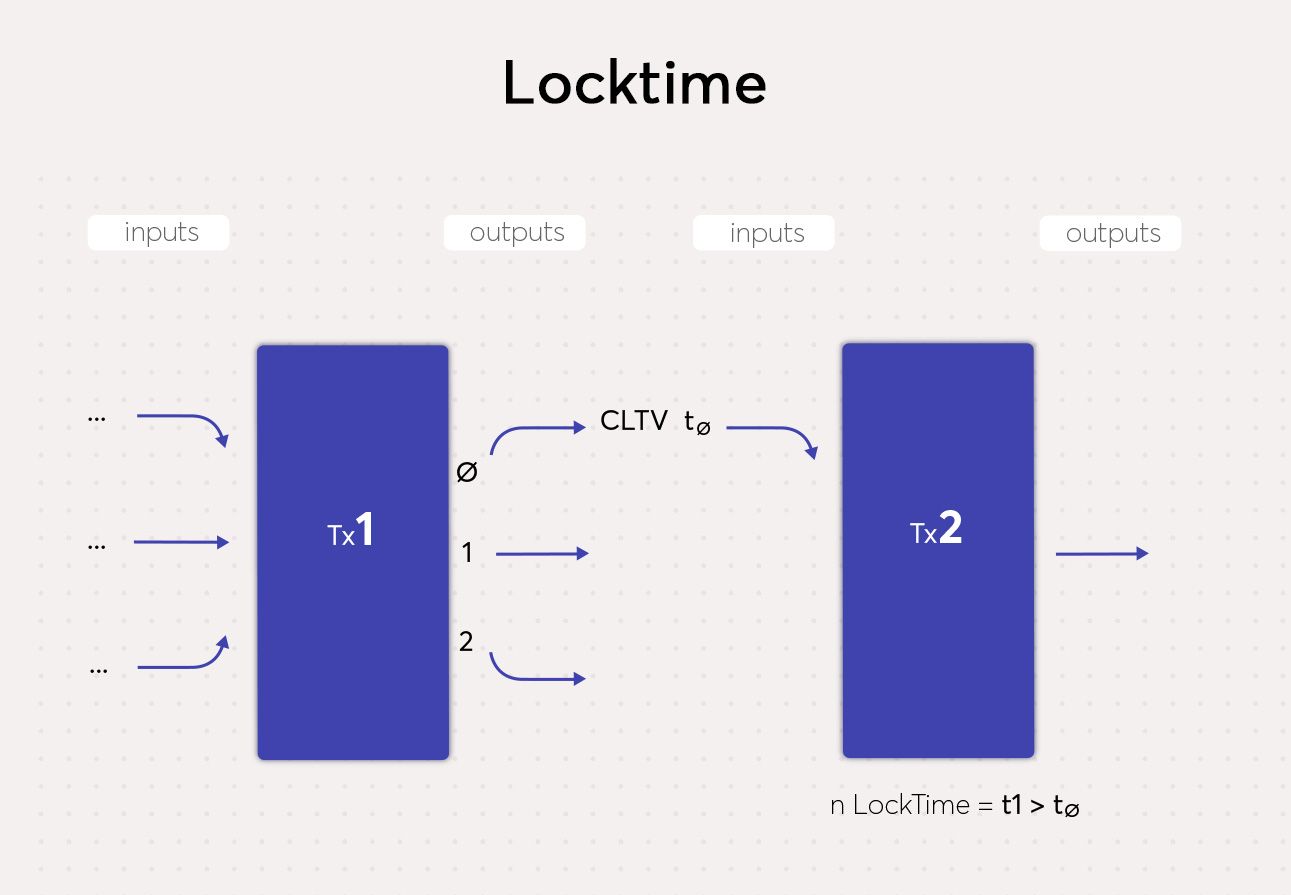 Comme le paramètre « locktime » (plus précisément nLockTime dans le code de Bitcoin Core) s’applique à toute la transaction, une instruction, CHECKLOCKTIMEVERIFY ou CLTV en abrégé, a été ajoutée en 2015 au langage Bitcoin Script, permettant d’appliquer une contrainte de temps sur une seule sortie d’une transaction, sans affecter les autres sorties.