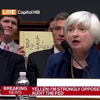 Mercredi, lors d’une intervention retransmise en direct de Janet Yellen qui témoignait devant le Congrès, un inconnu situé dans le public en arrière plan a subrepticement affiché un message pro-Bitcoin (« Buy Bitcoin ») avant d’être invité à quitter les lieux par la sécurité. Le mystérieux « Bitcoin Sign Guy » a choisi précisément le moment où la présidente du Conseil des gouverneurs de la Réserve fédérale était vantait les qualités de la Banque centrale des Etats-Unis, « une des plus transparente du monde ».