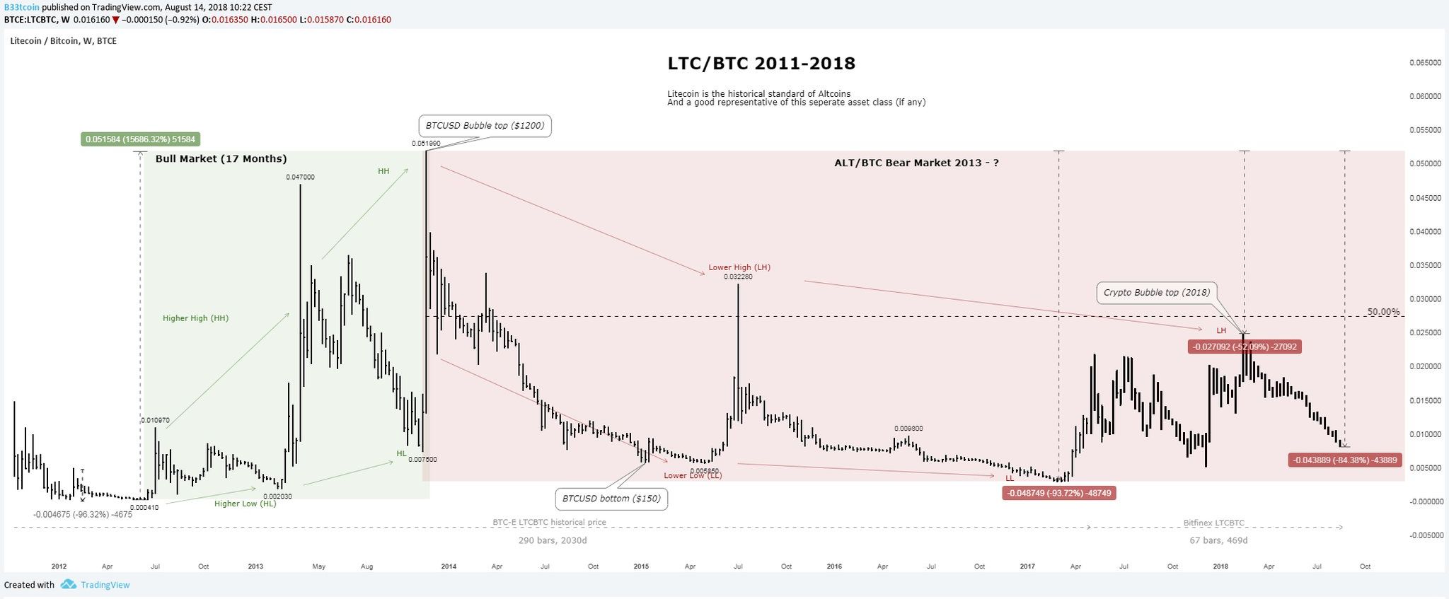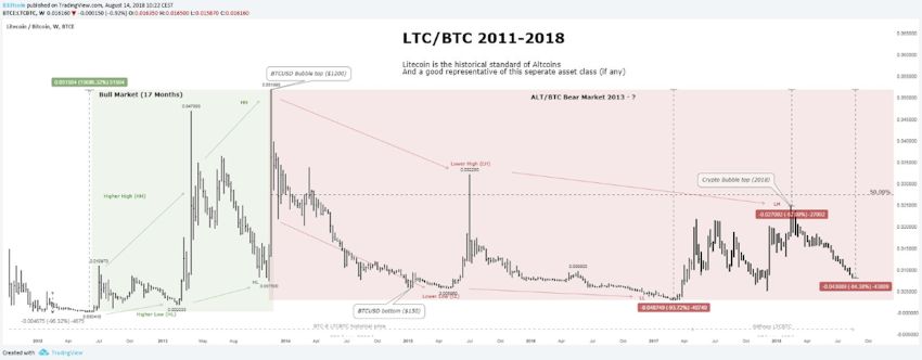 Pour plus d’informations au sujet des altcoins en tendance baissière (vs BTC) depuis 2013, lire : twitter.com/Beetcoin/status/1029088741107949568