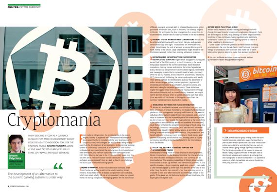 Le regard du secteur bancaire serait-il en train d’évoluer ? Le Magazine Quintessence du groupe BNP Paribas a consacré ce mois-ci une page complète aux potentialités de Bitcoin envisagé à la fois comme moyen de paiement, infrastructure décentralisée de gestion de titres et système de paiement international entre les grandes sociétés.