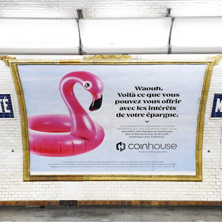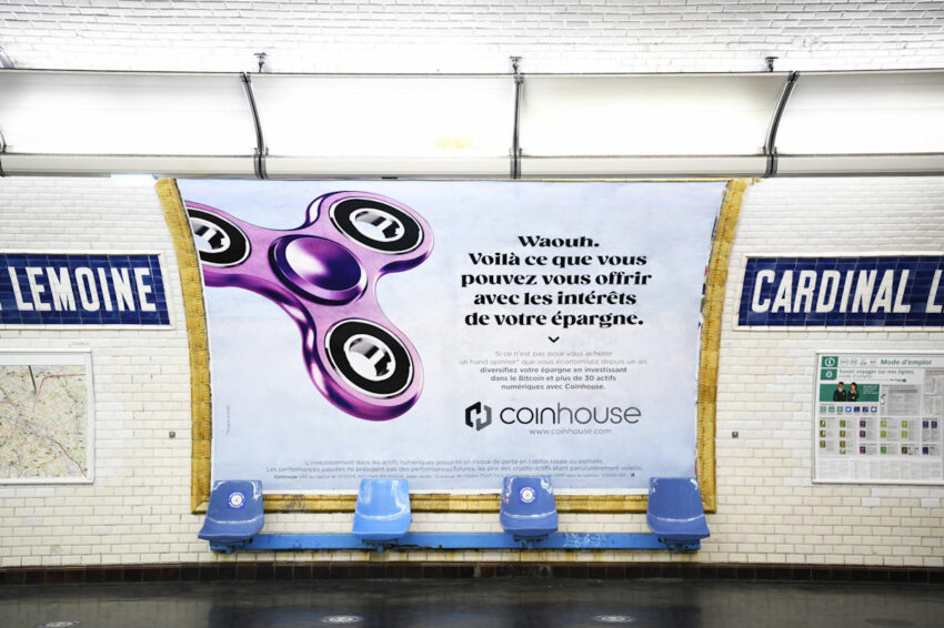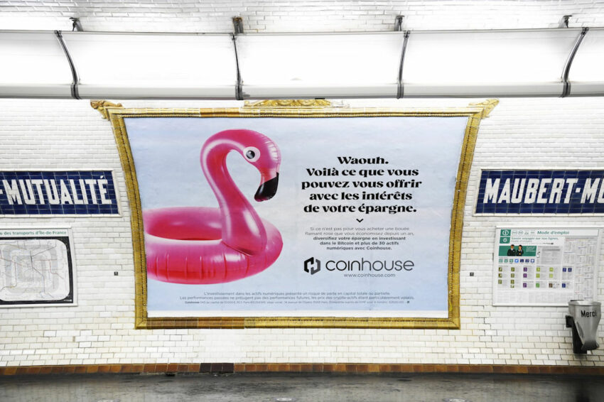 Bitcoin et les actifs numériques sont, depuis mardi, au centre d’une campagne d’affichage dans le métro parisien qui devrait durer une dizaine de jours. La campagne brocarde les faibles rendements proposés par les banques traditionnelles afin de promouvoir auprès du grand public les solutions d’investissement dans les actifs numériques proposées par Coinhouse.