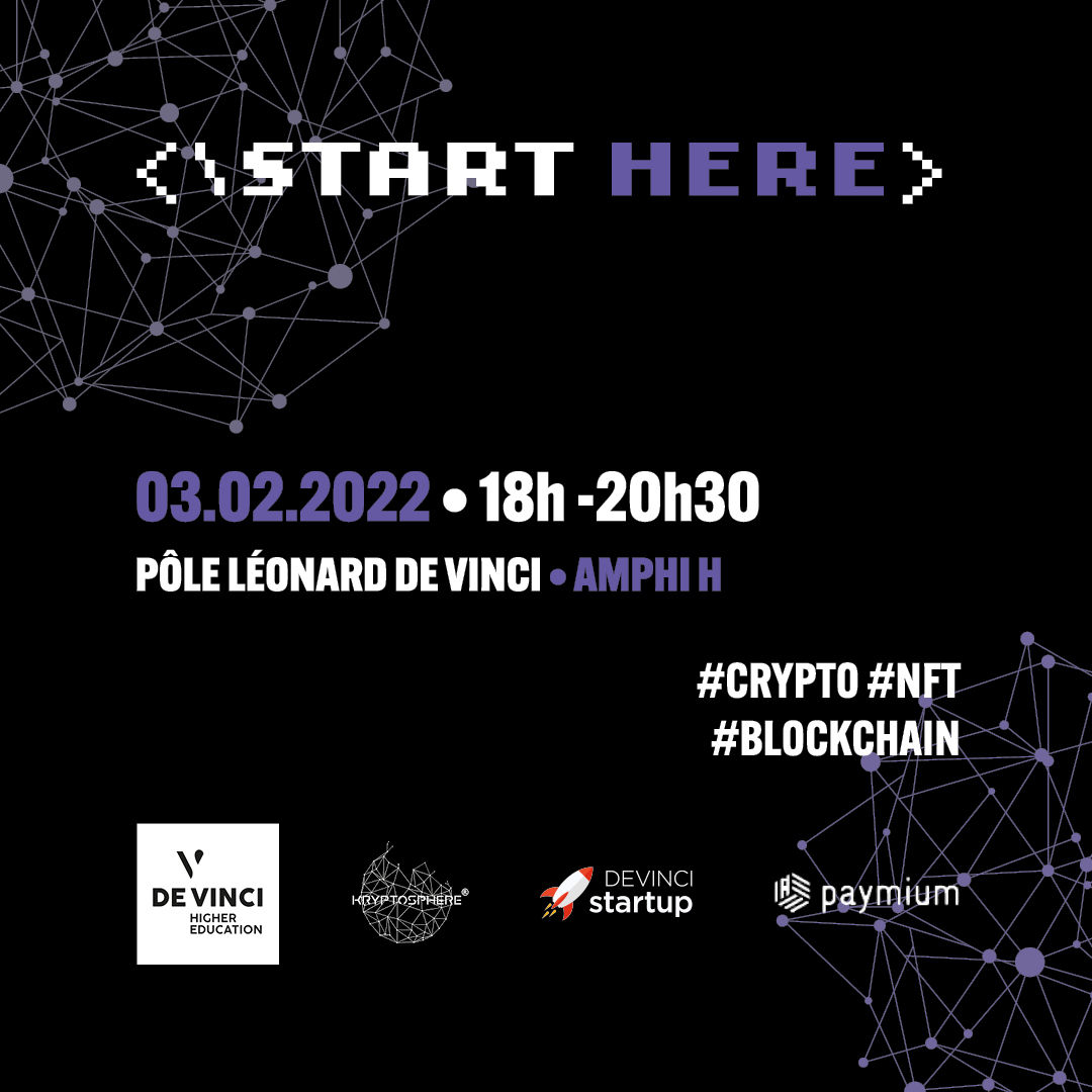 Organisée par le Pôle Léonard de Vinci, la première édition de « Start Here » aura lieu le jeudi 3 février. Cet événement est ouvert à toutes les personnes souhaitant apprendre les bases et les usages futurs des blockchains et cryptoactifs.