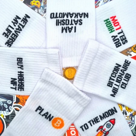 Nouvel ajout à la liste des établissements qui acceptent le bitcoin : Cryptostories, marque de chaussettes dédiée à l’univers des cryptomonnaies.
