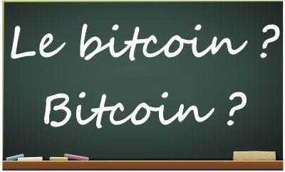 Quand on parle de Bitcoin en tant que système de paiement * il faut donc bannir le déterminant. Il ne viendrait à personne l’idée de dire « le Paypal » ni de parler « du Mastercard ». En revanche, en tant qu’unité monétaire, le déterminant et la minuscule sont de mise. On peut parler du cours « du bitcoin » et dire que « le bitcoin » est en baisse.