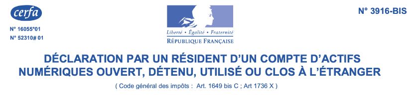 En tête du formulaire N°3916-BIS — Déclaration des comptes d’actifs numériques détenus à l’étranger