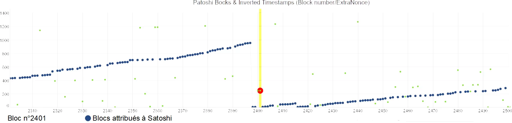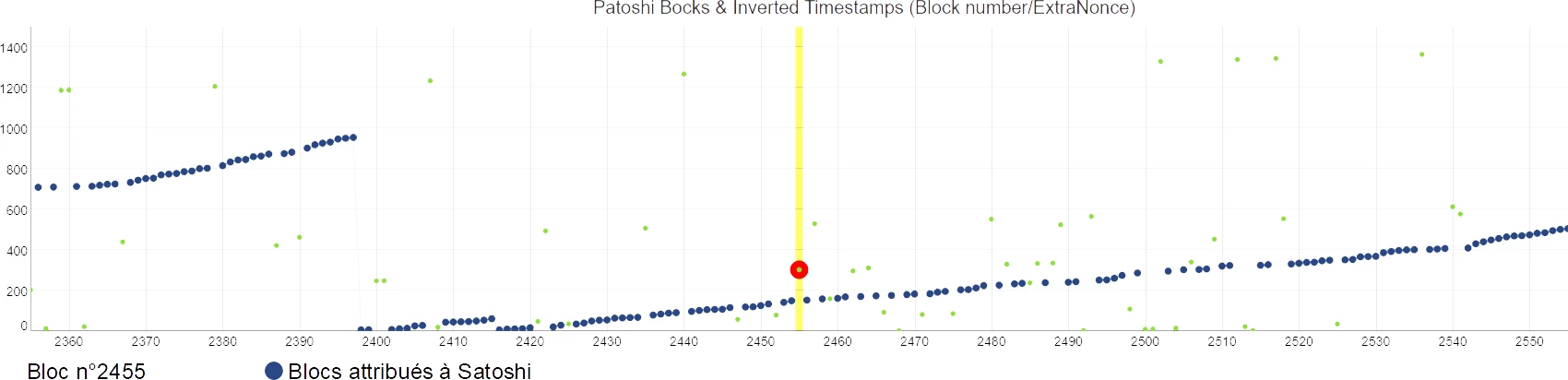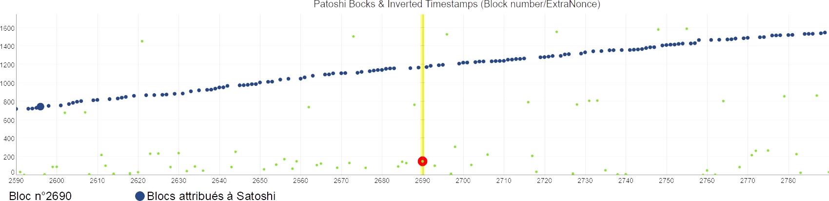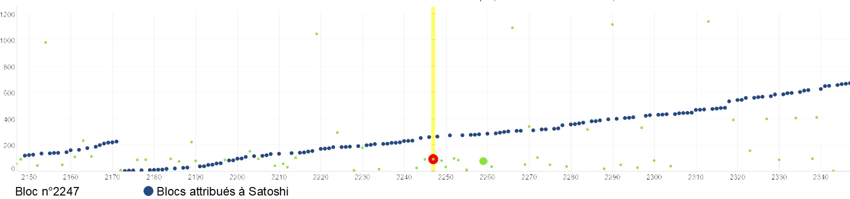 Pas de panique : Aucun de ces blocs n’appartient au Patoshi Patern, c’est-à-dire à l’ensemble des blocs vraisemblablement minés par Satoshi Nakamoto lui-même.