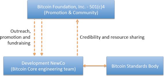 Le nouveau plan stratégique proposé par Patrick Murck prévoit le glissement de la Fondation d’un modèle « Linux Foundation » à un modèle « Mozilla » jugé plus propice. Il prévoit ainsi de scinder ainsi les activités de la Fondation en deux entités, l’une s’occupant des actions de promotion en lien avec la communauté et l’autre du développement technique de Bitcoin Core.