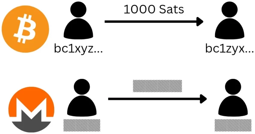 Bitcoin est pseudonyme avec une transparence des transactions puisqu’elles sont publiques, tandis que Monero est totalement anonyme comme l’illustre ce meme :