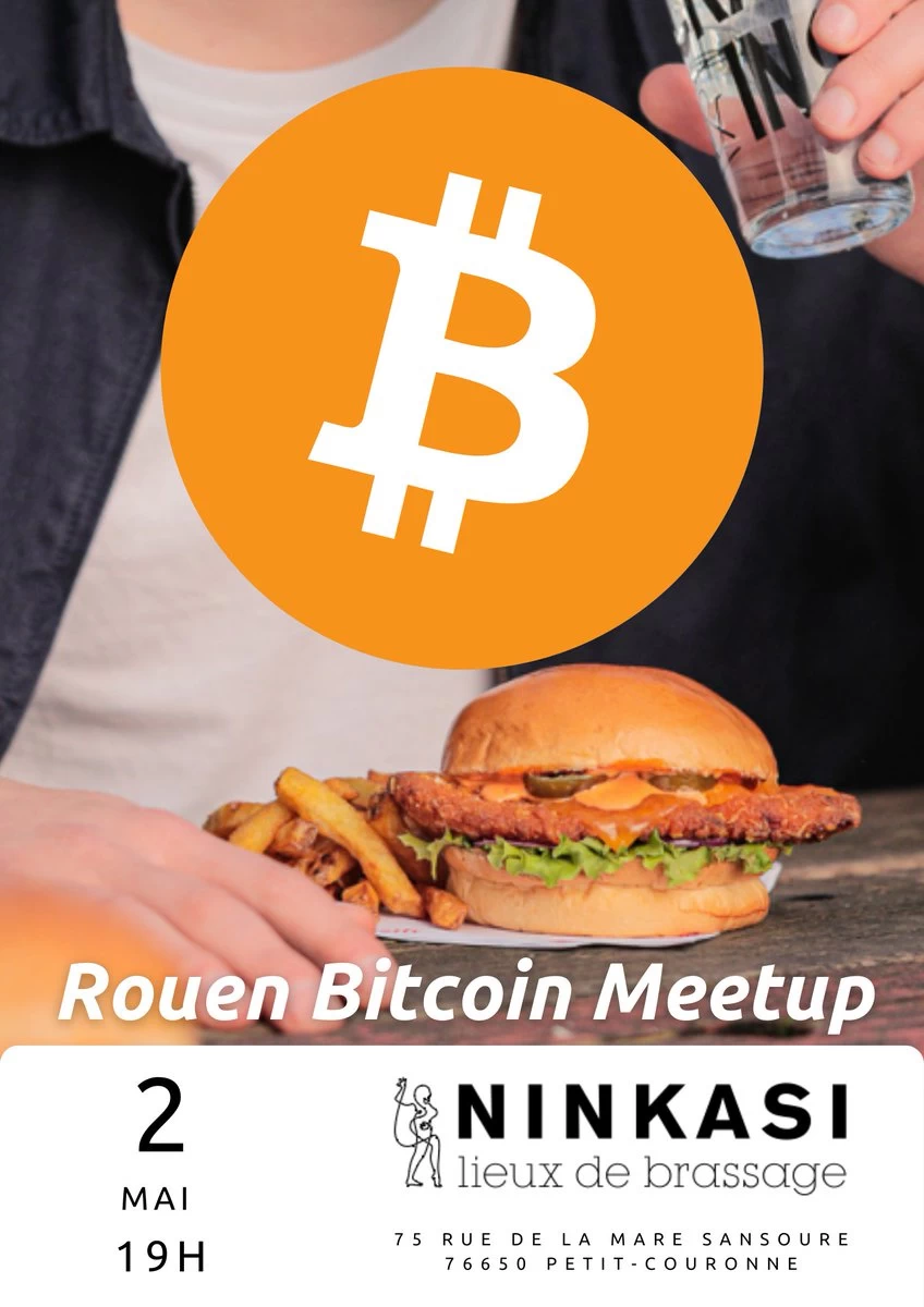 « Vous êtes passionné de Bitcoin et vous voulez rencontrer d’autres Bitcoineurs en Normandie ? Rejoignez-nous pour le Bitcoin Meetup le 2 mai 2023 à 19h chez Ninkasi ! Profitez d’une soirée conviviale autour de bières, burgers, salades et planches. »