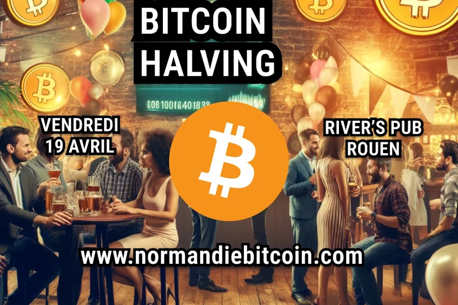 « Rejoignez nous vendredi 19 avril dès 17h au River’s Pub à Rouen pour célébrer un moment phare de Bitcoin : le halving ! Préparez vous pour une soirée de discussions, de réseautage et de célébrations. Ne ratez pas ça !«