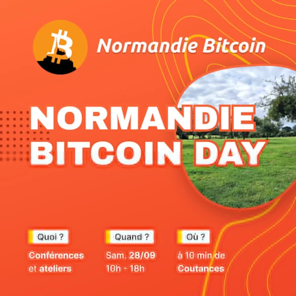 « Rendez-vous le samedi 28 septembre près de Coutances (50) pour une journée unique dédiée à Bitcoin : Un atelier, trois conférences, et une table ronde. Petit déjeuner et déjeuner inclus ! »