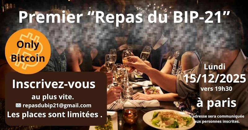 L’association BIP-21 organise son premier repas, une manière différente de faire connaissance entre nous, Bitcoiners, ainsi qu’avec d’autres personnes qui contribuent à notre écosystème.