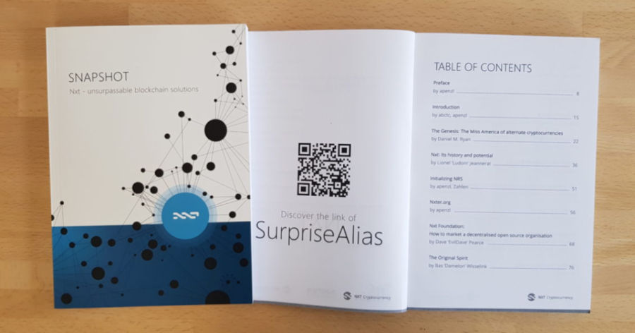 Ensuite, il y a eu Nxt avec les alias dès décembre 2013. En août 2014, une boutique décentralisée permettait de vendre des œuvres numériques sur Nxt. Les ventes de poèmes, de musiques et de dessins sont immortalisées dans la blockchain, j’ai été parmi les pionniers dès octobre 2014 de la création liée à la blockchain en vendant une version numérique, traduite en anglais spécialement pour l’occasion, de mon œuvre Romance érotique. PVH éditions a été la première maison d’édition à vendre ses livres sur une telle boutique. Les acheteurs ont la preuve sur blockchain d’avoir participé à ces débuts. Je pense même avoir été l’un des premiers à lier volontairement un NFT à une création physique, en intégrant un alias de Nxt dans le livre Snapshot (photo d’illustration de l’article), vendu en décembre 2015, créé en novembre 2016. Personne n’est réellement au courant, seuls quelques original gangsters gardent un souvenir vague de tout ça, ces histoires disparaîtront sans doute en même temps que moi. Il en sera ainsi de la plupart des NFT, ainsi va la vie.