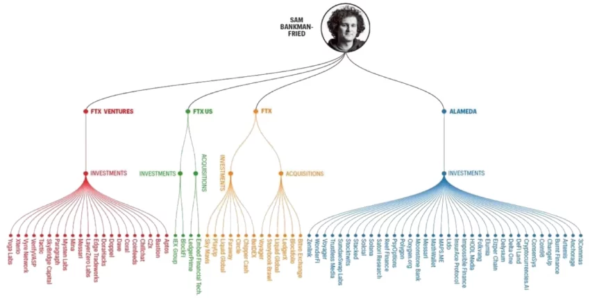 La faillite concerne toutes les sociétés du groupe : le fonds d’investissement Alameda Research, les deux plateformes d’échanges (FTX.us et FTX.com) mais aussi et 134 autres entités juridiques lui appartenant *. FTX possède en outre des participations dans de nombreuses sociétés. qui pourraient également, à différents degrés, être affectées par la situation.
