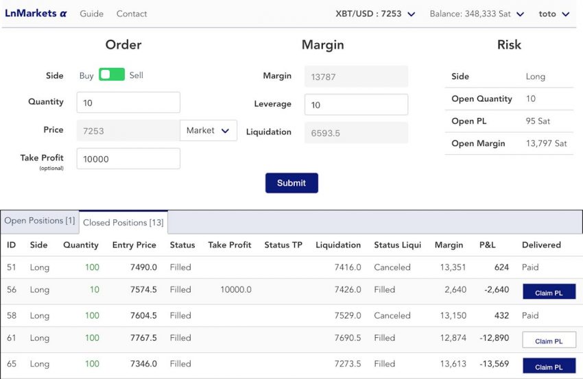La fermeture d’une position passe par la procédure opposée : une fois que la fermeture est confirmée, manuellement ou via un ordre, les fonds sont instantanément transférés au wallet du trader par un paiement lightning.