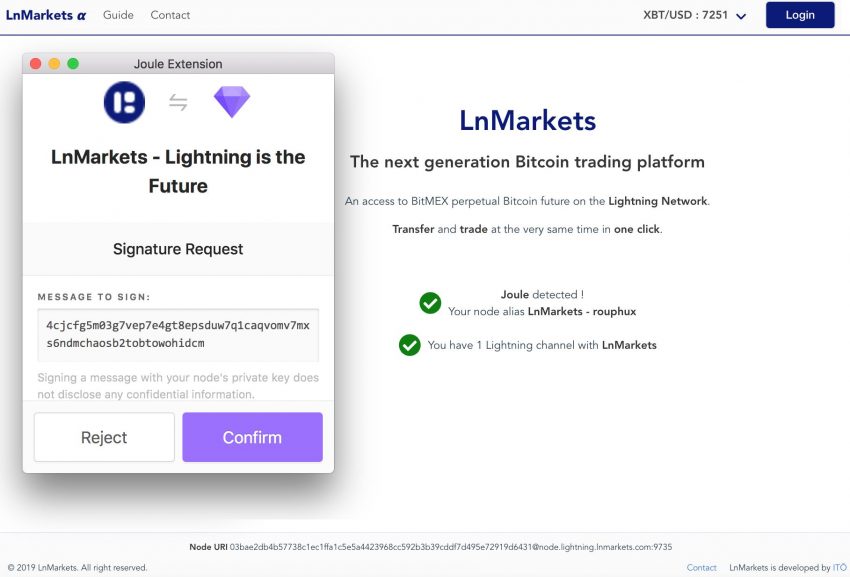 Pas besoin de s’enregistrer pour venir tester LnMarkets, vous aurez simplement besoin d’une wallet Joule.