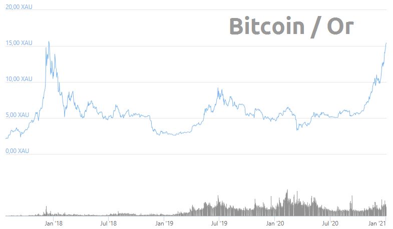 Le bitcoin a également retrouvé son sommet par rapport à l’or :