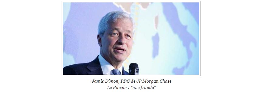 Inutile de dire que lorsque Jamie Dimon, PDG de cette banque depuis 2005, s’est avisé à son tour d’utiliser le terme de « fraude » pour dénoncer la monnaie cryptographique qu’est le bitcoin… il s’est attiré quelques moqueries cinglantes.