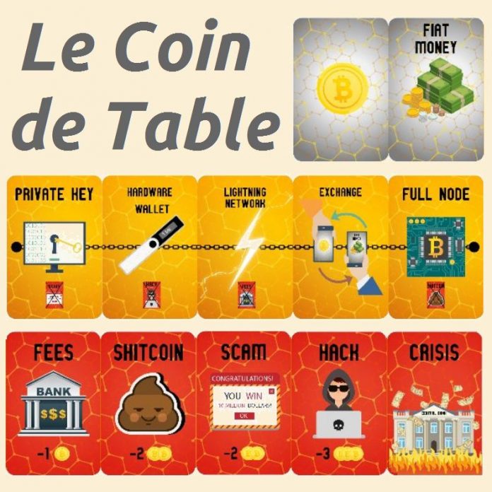 Créé par le mystérieux Maxime Aliste, Le Coin de Table est un jeu de société autour de l’univers de Bitcoin, vendu exclusivement en bitcoin.