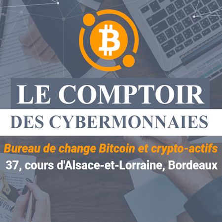 Créé en 2018 par François Miquel et Baptiste Lac, le Comptoir des Cybermonnaies de Bordeaux permet d’acheter et de vendre du bitcoin et d’autres crypto-actifs sur place, dans son agence à Bordeaux au 37 cours d’Alsace-et-Lorraine, mais aussi à distance sur son site internet.