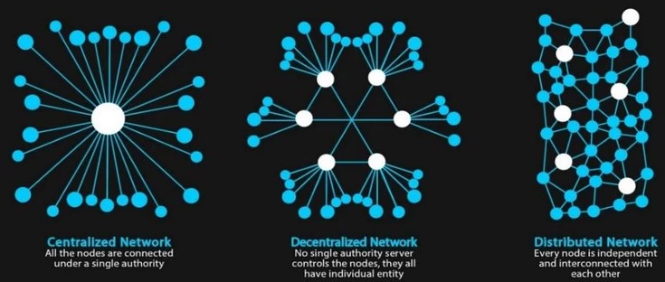 Commençons par un petit rappel théorique. Tous les groupes sociaux ayant des interactions économiques (production, transactions…) peuvent être décrits comme des réseaux de plus ou moins grandes pyramides hiérarchiques (chef(s), sous-chef(s), exécutants…) selon leur degré de centralisation. C’est notamment le cas des entreprises ou des associations. Dans le cadre d’une décentralisation maximale, il est question de réseau distribué où chaque nœud du réseau est « singulier » (il doit être considéré de manière individuelle).