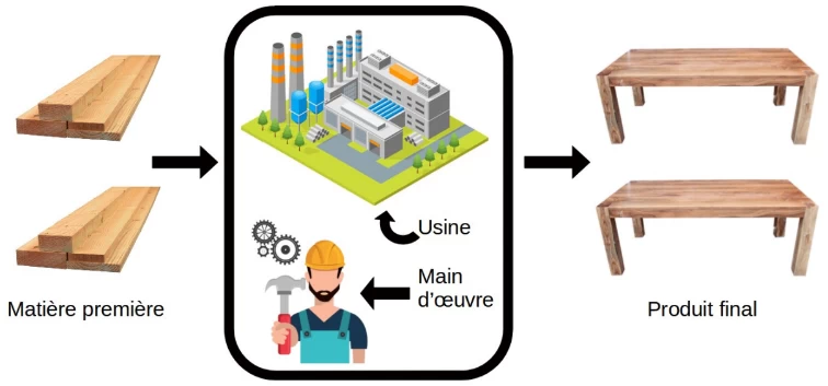 Ci-dessous une représentation très simplifiée du schéma de la structure d’une usine :