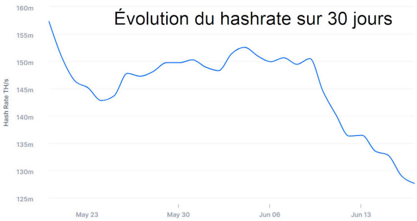 Avec la baisse progressive de l’activité de minage en Chine, la puissance de calcul du réseau Bitcoin a baissé de façon importante ces derniers temps.