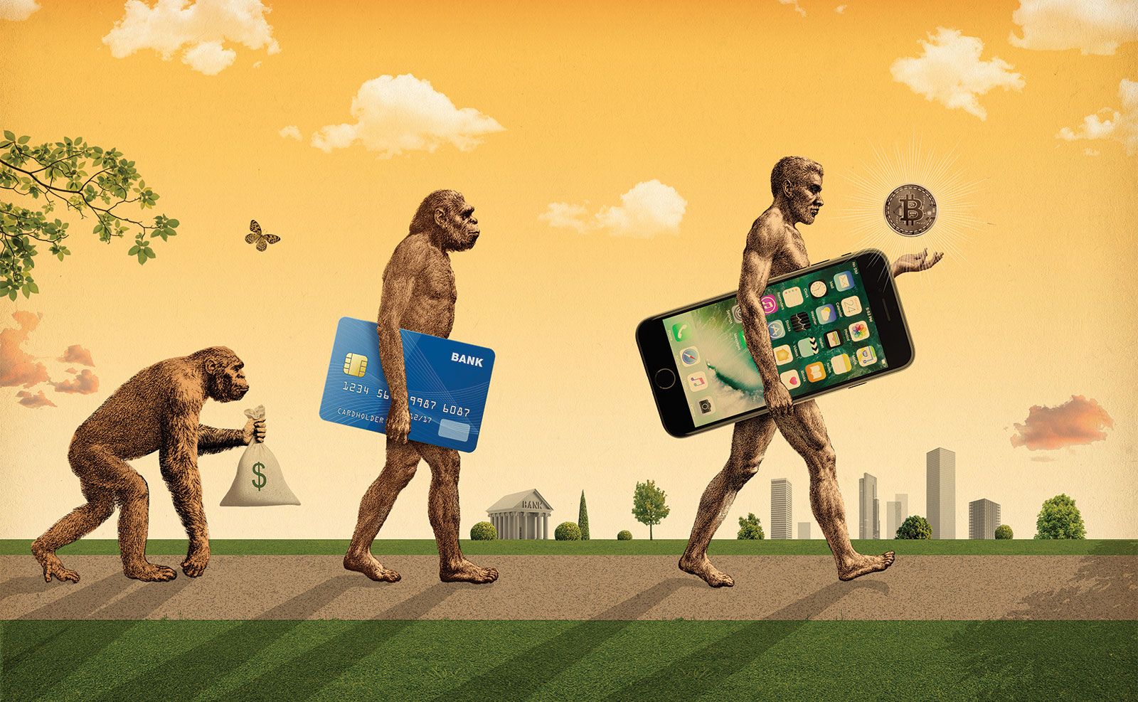 A la Une de son site internet c’est bien un bitcoin, dans sa représentation symbolique sonnante et trébuchante, que le FMI vient de placer à l’extrémité d’un schéma montrant l’évolution des moyens de paiement… mais l’hommage s’arrête là. Si le texte qui suit consacre les grandes inventions – l’imprimerie, la machine à vapeur, le chemin de fer, l’électricité, l’ordinateur – la montagne accouche d’une souris quand on aborde la révolution des cryptomonnaies, présentée d’abord comme un danger avant d’être réduite à une simple innovation incrémentale :