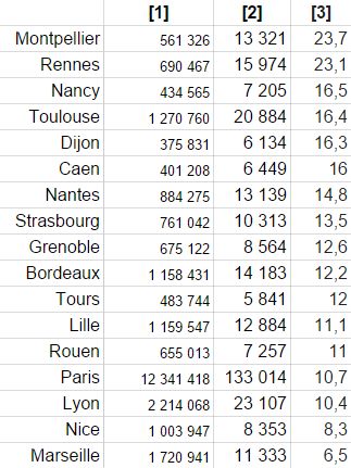 Rapporté au nombre d’habitants, c’est à Montpellier et à Rennes qu’on trouverait la plus grande proportion de lecteurs de losarita.es.