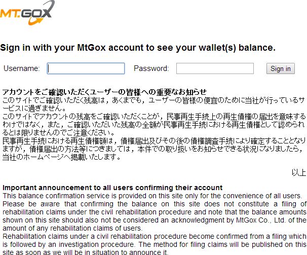 La plateforme MtGox, actuellement en redressement judiciaire, permet à nouveau à ses clients de consulter le solde de leur compte. Cette information n’est donnée qu’à titre indicatif et ne constitue évidemment pas une reconnaissance des sommes dues. Pour tenter de récupérer leur argent, les clients devront remplir un formulaire de réclamation qui sera, selon MtGox, disponible prochainement.