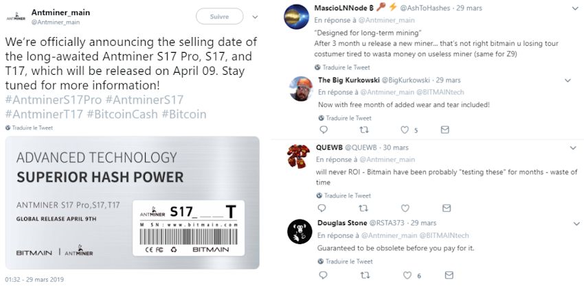Bitmain, en évoquant son S17, a forcé à la surenchère ses concurrents, qui ont certainement communiqué dans la précipitation.