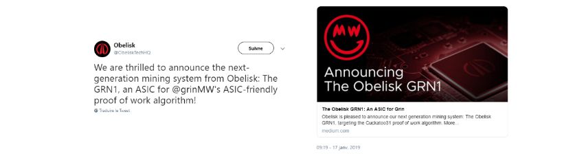 C’est une pratique qui existe, notamment chez Obelisk (fabricant américain très innovant), qui tente actuellement de prévendre 10 000 de ses futurs matériels destinés au mining de GRIN ; le deal est clair de la part d’Obelisk : si les préventes n’atteignent pas 10 000, le projet ne sort pas.