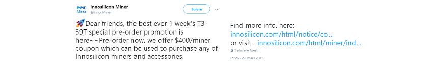 Pas mieux chez Innosilicon où on offre des coupons de 400$ pour les commandes passées dans la semaine, histoire de précipiter les achats.