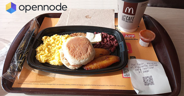 « Je viens d’entrer dans un McDonald à San Salvador pour voir si je pouvais payer mon petit-déjeuner avec du bitcoin, m’attendant à ce qu’on me dise non. Mais voilà : ils ont imprimé un ticket avec code QR qui m’a mené à une page Web avec une facture Lightning, et maintenant je profite de mon desayuno [petit-déjeuner] traditionnel ! »