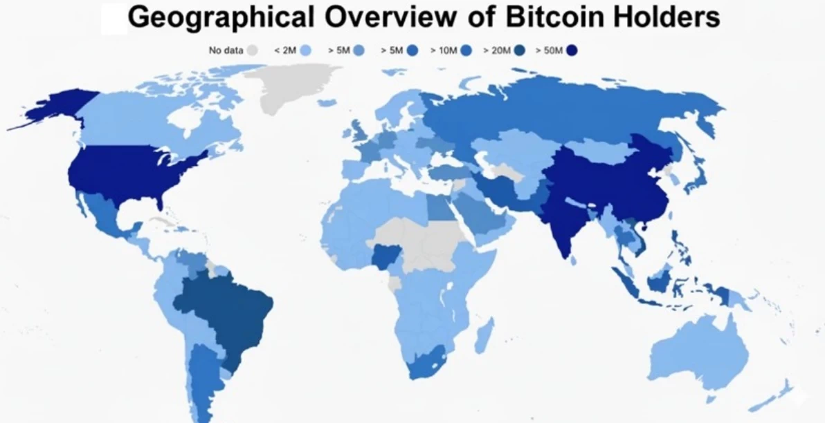 La majorité des « Hodlers » de bitcoins se trouvent en Amérique du Nord et en Asie, puis en Amérique du Sud et en Europe, enfin l’Afrique est le continent avec le moins de détenteur de Bitcoin. Il est dommage que cette carte ne donne pas le pourcentage de « Hodlers » par rapport à la population.