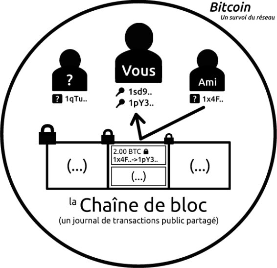 Comme nouvel utilisateur, vous avez seulement besoin de choisir un porte-monnaie que vous installerez sur votre ordinateur ou sur votre mobile. Une fois prêt, votre porte-monnaie créera votre première adresse Bitcoin et vous pouvez en créer de nouvelles chaque fois que vous en avez besoin. Vous pouvez communiquer l’une de vos adresses Bitcoin à un ami pour qu’il puisse vous payer. De la même façon, vous pouvez payer vos amis s’ils vous donnent leurs adresses. En fait, échanger des Bitcoins est assez similaire à échanger des emails. Ensuite, il ne reste qu’à obtenir quelques Bitcoins et à les garder en sûreté. En tant qu’utilisateur, vous n’avez pas besoin de connaître le fonctionnement technique.