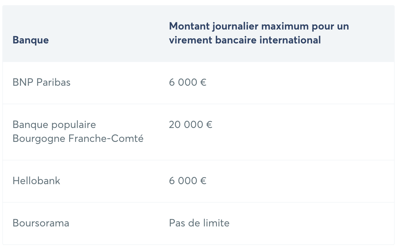 La startup de paiement Transferwise a synthétisé les montants maximum journaliers pour les échanges d’argent à l’international par banque.