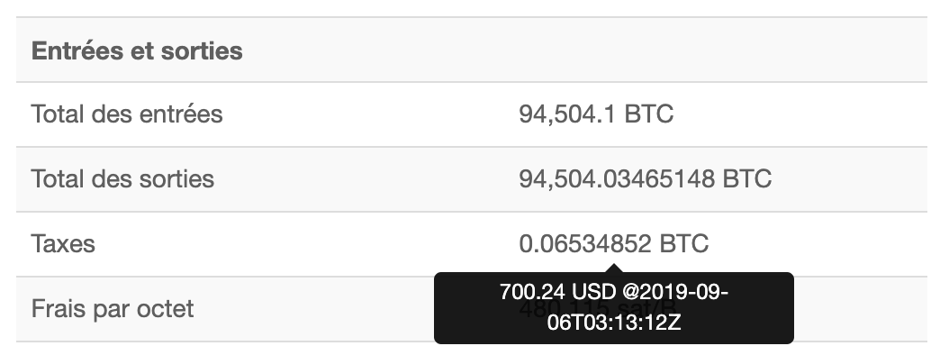 ➡️ Nous allons illustrer les changements de paradigme proposés par l’Internet de l’argent, grâce à une transaction de 94 504,5 bitcoins (équivalent à presque 1 milliard d’euros) réalisée le 06 septembre 2019 à 3h30 UTC+2). Détail public de la transaction : blockchain.com/btc/tx/4410c8d14ff9f87ceeed1d65cb58e7c7b2422b2d7529afc675208ce2ce09ed7d