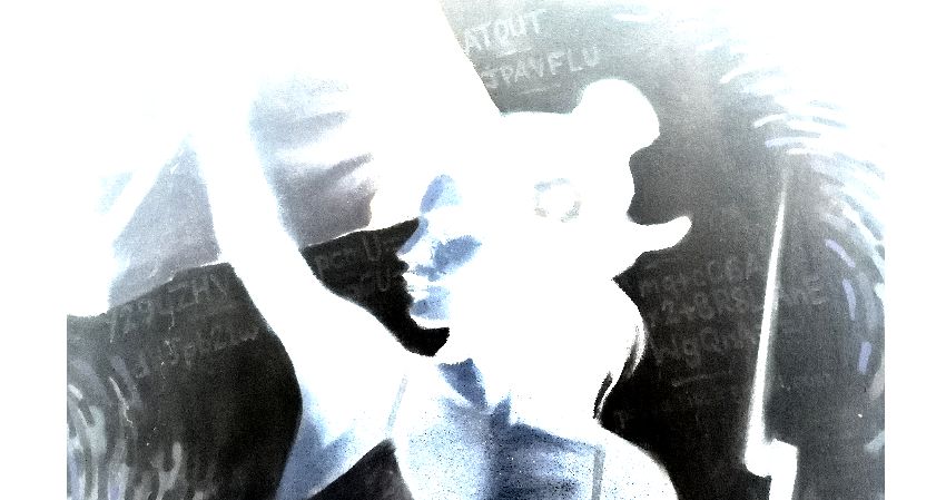 J’ai vu ensuite avec le reflet d’un lampadaire un texte écrit à droite de la tête de Marianne. On a ensuite trouvé tous les textes autour de la tête de Marianne. Avec la torche des smartphones, on voyait ressortir les textes. On pensait que c’était peut-être une encre fluorescente.