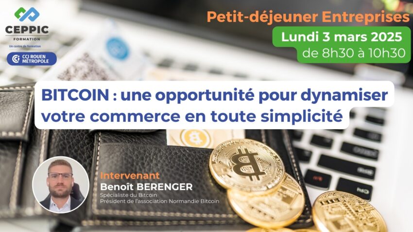 En savoir plus : https://www.ceppic.fr/petit-dejeuner-entreprises-3-mars-2025-de-8h30-a-10h30-bitcoin-une-opportunite-pour-dynamiser-votre-commerce-en-toute-simplicite/