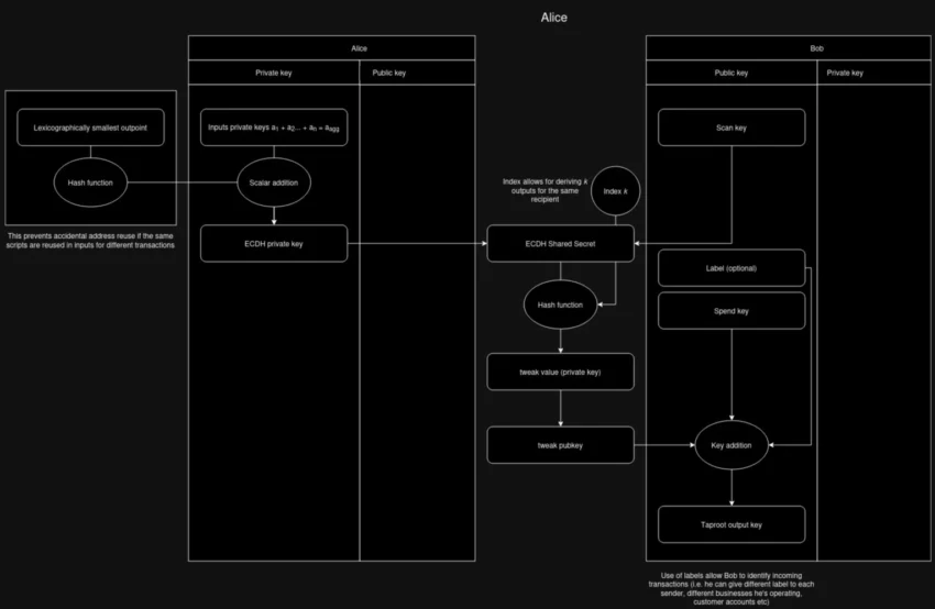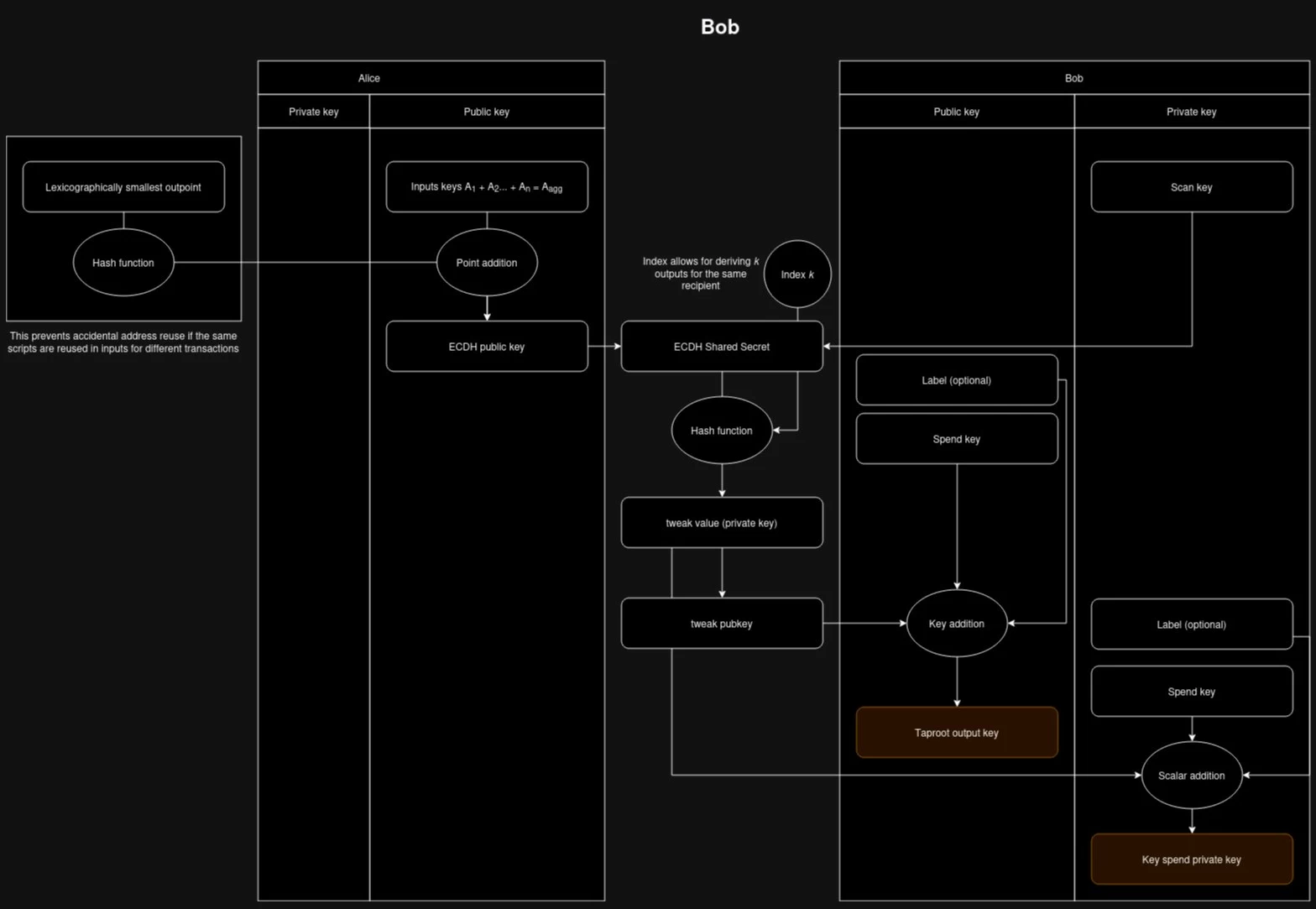 - Scalar Addition : Si une sortie correspond, Bob peut utiliser sa clé privée de dépense pour dépenser les fonds reçus.