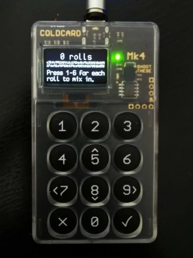 Mk3 : Connexion à la Coldcard avec NIP > Import Existing > Dice Rolls