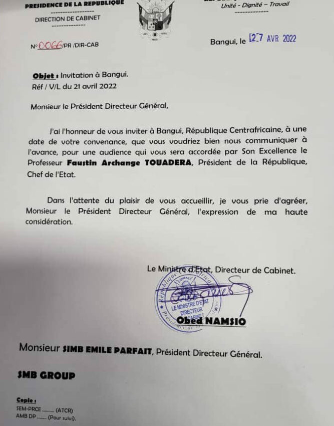 Le président de Centrafrique invite Emile Parfait Simb