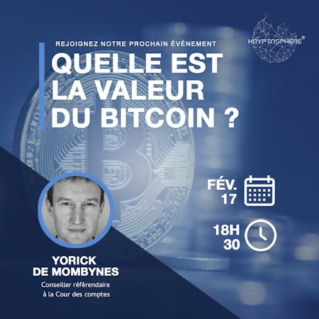 « Nous avons le plaisir de recevoir Monsieur Yorick de Mombynes pour un débat traitant de la thématique suivante : « Quelle est la valeur du Bitcoin ? »