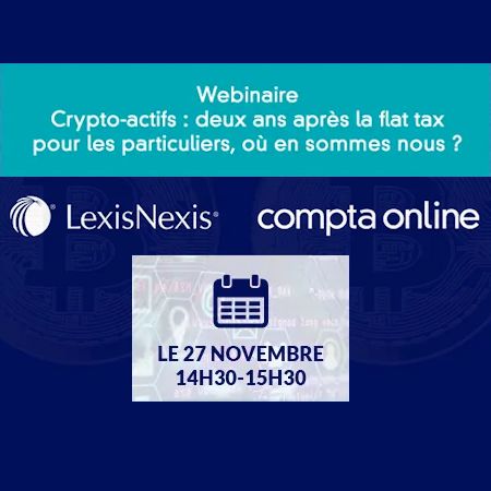 Compta Online et LexisNexis organisent une série de deux webinaires, les 27 novembre (à 14h30) et 18 décembre 2020, visant à croiser les regards de trois praticiens confrontés au quotidien à la fiscalité des actifs numériques.